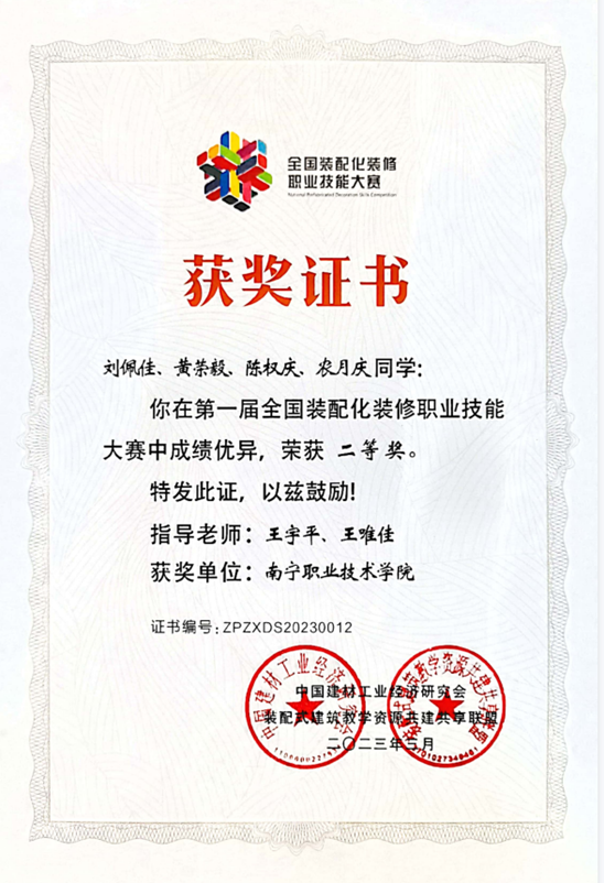 2、2023年全国第一届装配化装修职业技能大赛二等奖