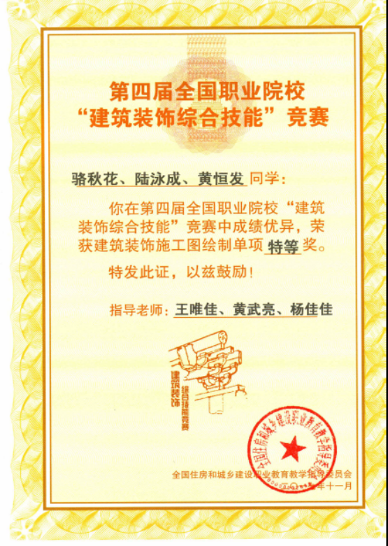 2017年第四届全国职业院校“建筑装饰综合技能”竞赛团体特等奖