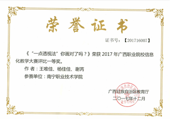 2017年广西职业院校信息化教学大赛获一等奖