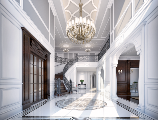 装饰专业员工黄小龙作品——洛杉矶别墅大厅装饰工程效果图