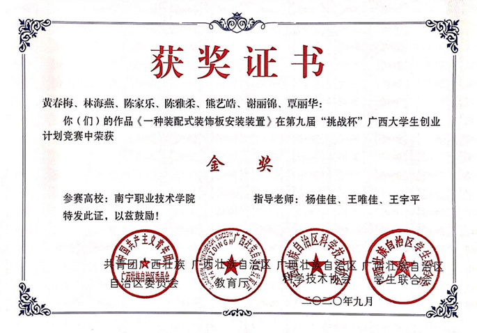 3、2020年第九届“挑战杯”广西老员工创业计划竞赛金奖