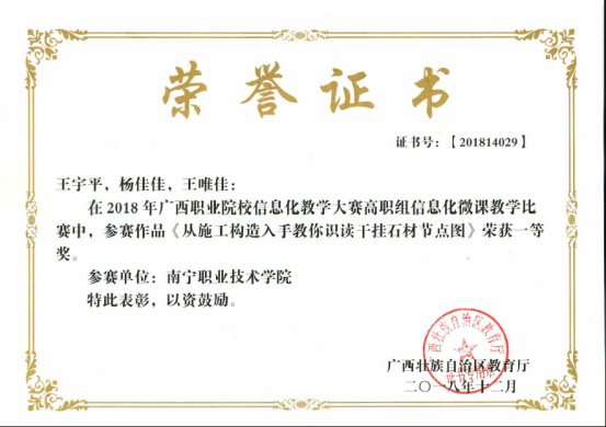 2018广西职业院校信息化大赛获一等奖