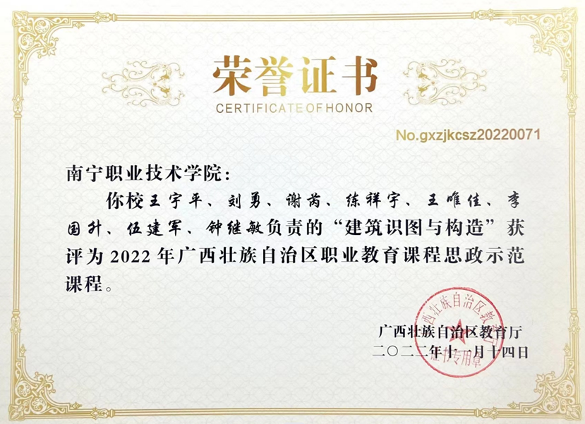 6、2022年广西壮族自治区职业教育课程思政示范课程《建筑识图与构造》