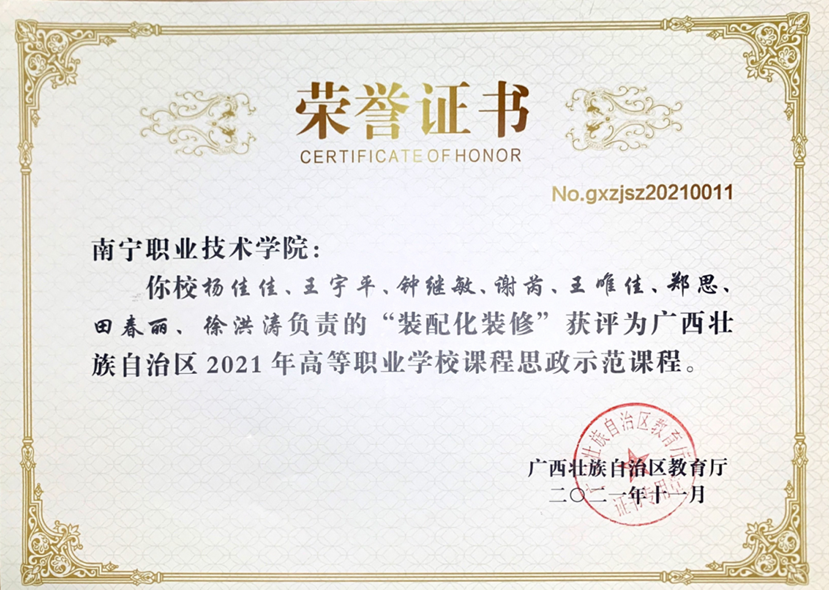 5、广西壮族自治区2021年高等职业学校课程思政示范课程《装配化装修》