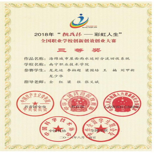 2018年全国职业学校创新创效创业大赛 国家三等奖