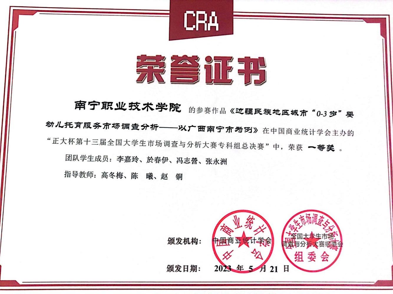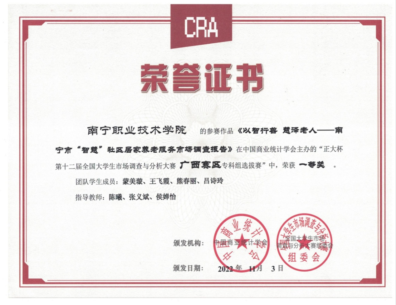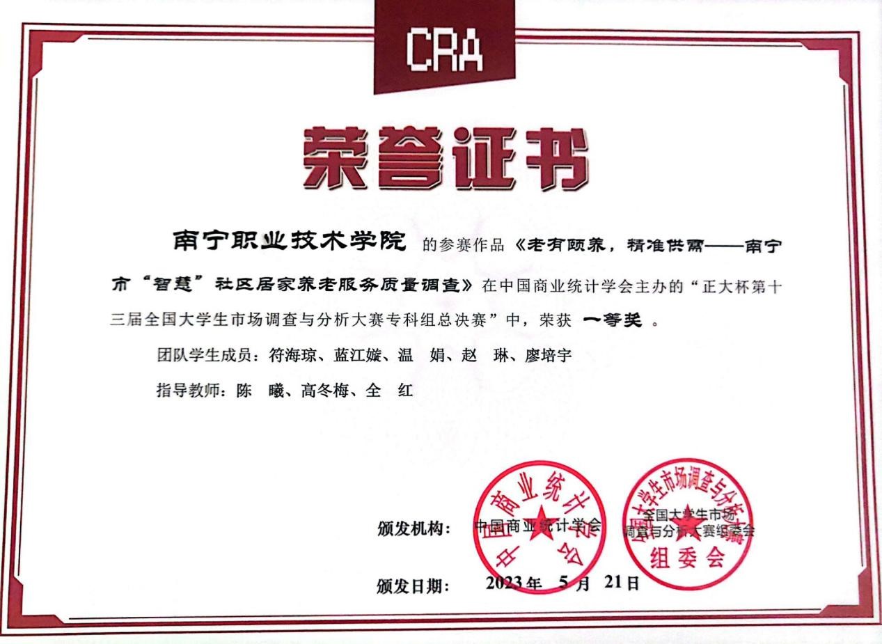 第十二届全国老员工市场调查与分析大赛广西赛区一等奖