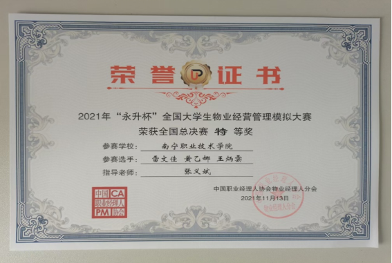 2021年“永升杯”物业经营管理模拟大赛全国总决赛特等奖